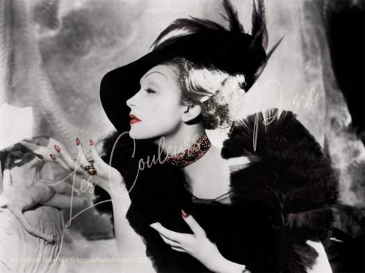Les couleurs sont imaginées et appliquées au pinceau informatique afin de redonner leur lustre d’origine aux modèles ayant posé à l’époque devant l’objectif du photographe. Il en résulte une oeuvre unique, mêlant le noir et blanc du passé aux teintes discrètes du temps présent.